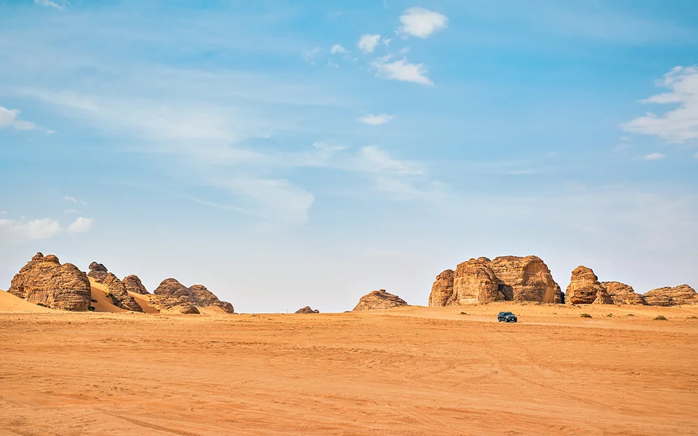 Esmorzar a l’hotel. Avui descobrirem en vehicles 4×4 alguns dels paisatges més impressionants d’Aràbia Saudita. Començarem el matí a Hisma, un entorn desèrtic de bellesa excepcional farcit d’espadats de roca vermella que recorda els famosos paisatges de Wadi Rum, a Jordània. La zona també gaudeix d’un interès arqueològic especial, tal i com testimonien la multitud de gravats i inscripcions rupestres escampats per tota la regió. Dinarem tipus pícnic i a la tarda ens acostarem a Jebel Al Lawz, que amb 2.580m d’altitud és una de les muntanyes més altes del país. Segons la tradició local, la muntanya és el veritable mont Sinaí, on Moisés va rebre les taules de la llei. Veurem alguns indrets que recorden la vida del personatge bíblic i després retornarem a Tabuk per sopar a un restaurant local. En acabar anirem a l’hotel per descansar, després de gaudir d’un dia d’impressionants paisatges.