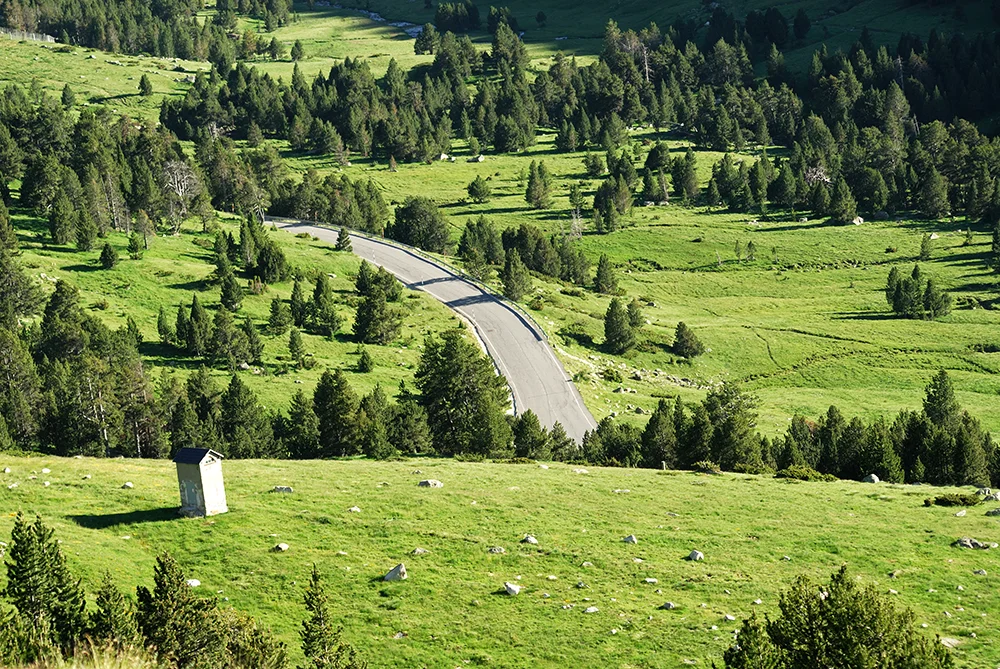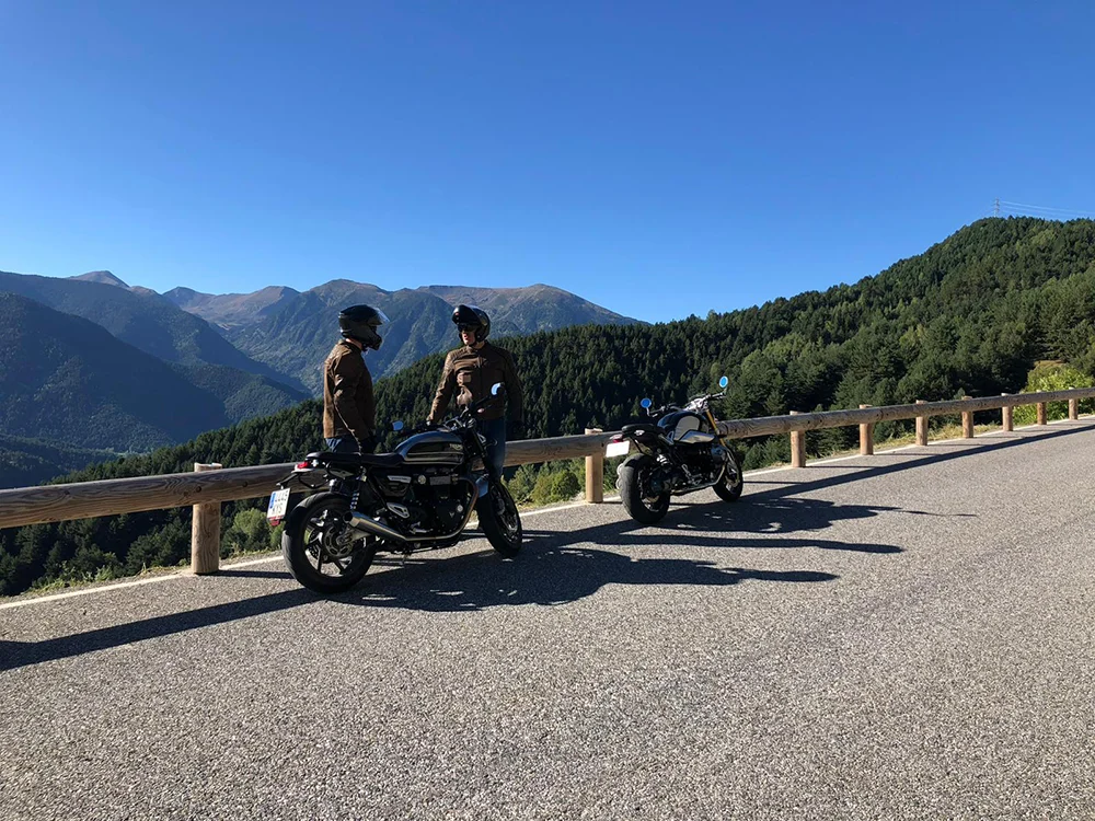 Después del almuerzo, nos espera el Port d’Envalira, el paso asfaltado más alto de los Pirineos. Su ascenso es una invitación al juego de curvas, y su descenso hacia Andorra nos sumerge en otro ritmo. Llegamos a Andorra la Vella al atardecer, donde nos recibe el confort de nuestro hotel y la calidez de una cena entre amigos.