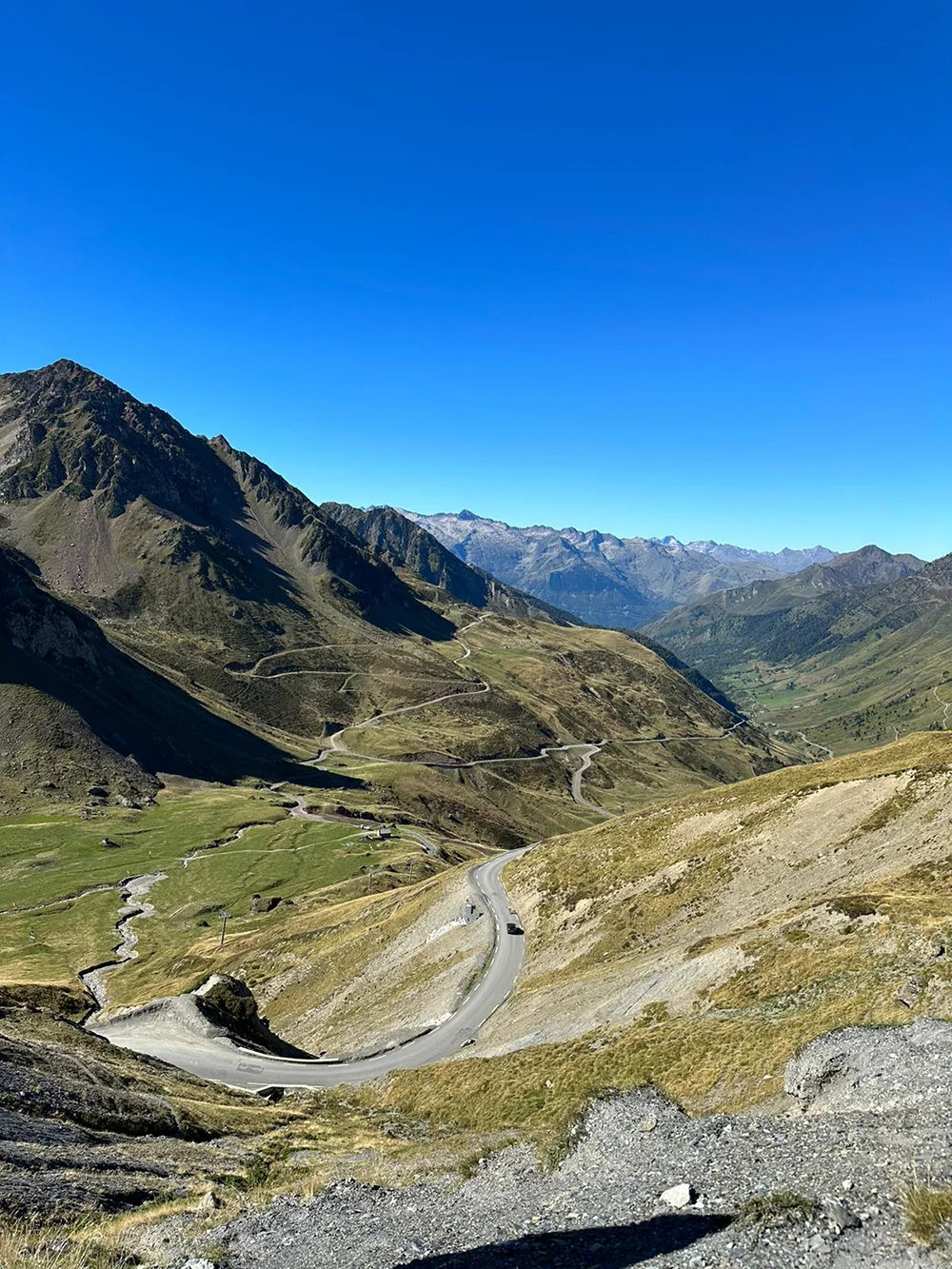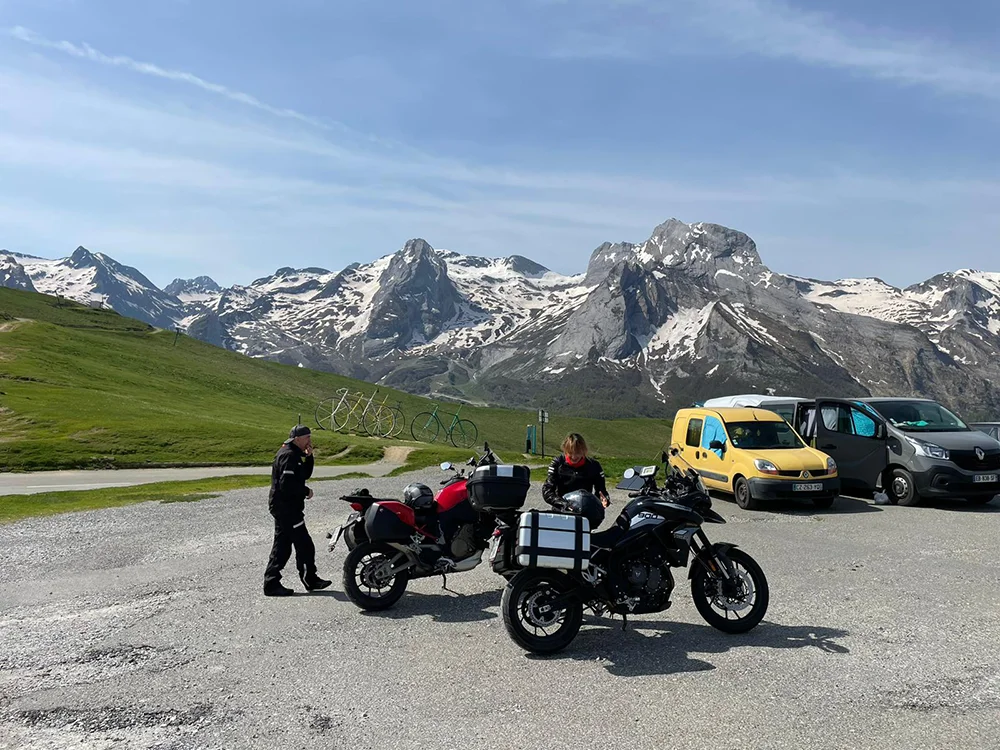 Nos adentramos en la jornada más épica. Tras atravesar Sort y Baqueira, rodamos hacia Francia para enfrentar algunos de los pasos más emblemáticos del Pirineo: Peyresourde, Aspin, Tourmalet, Aubisque. Curvas bien trazadas, vacas pastando en libertad, ciclistas que nos saludan con respeto.