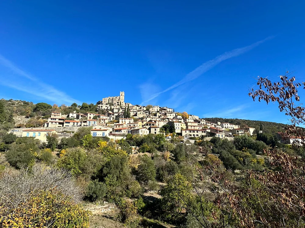 Salimos desde la llanura catalana rumbo norte, cruzando suaves colinas que pronto se convierten en los primeros pliegues del Pirineo. En Francia, descubrimos Eus, uno de los pueblos más bonitos del país, con sus casas de piedra abrazadas a la montaña y vistas que se abren hacia el Canigó.