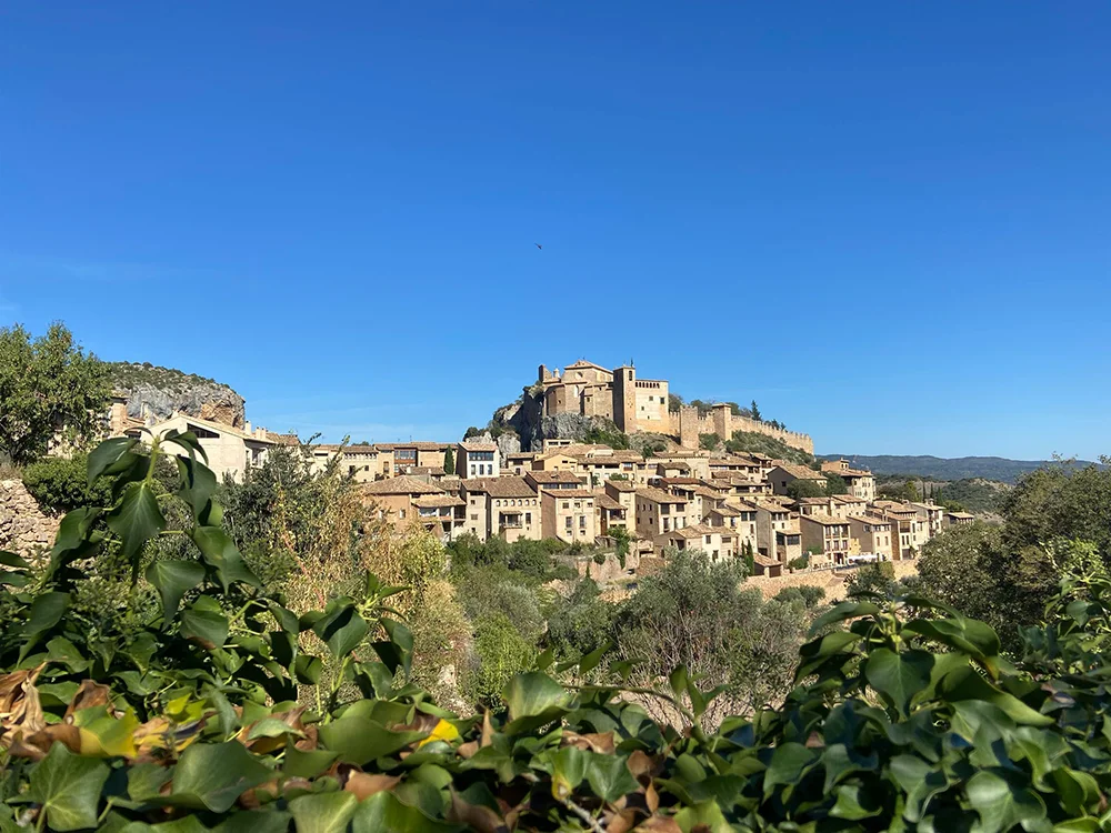Por la tarde retomamos las motos para atravesar el Puerto de Serrablo, poco transitado y profundamente bello. La llegada a Alquézar es como entrar en un sueño: calles empedradas, un castillo árabe, luces doradas al anochecer. Aquí, cada rincón invita a quedarse. Después de recorrer esta bonita población regresamos a nuestra base.