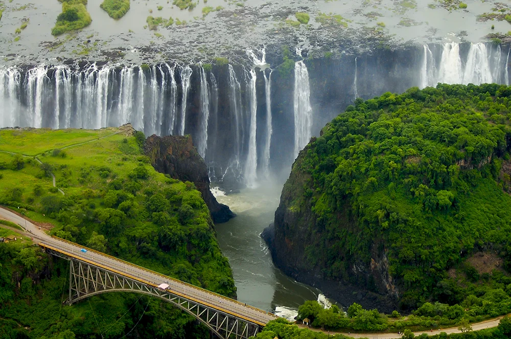 Després d’esmorzar anirem a visitar les cascades (UNESCO) tot passejant pel camí que ressegueix el front dels salts d’aigua i on gaudirem d’un espectacular paisatge. A continuació farem un creuer pel riu Zambezi per veure hipopòtams i cocodrils i contemplar els bonics paisatges de la riba del riu. Dinarem durant la navegació i a la tarda ens dirigirem a l’aeròdrom per començar un vol amb helicòpter sobre les cascades Victòria, l’engorjat que hi ha a continuació i les aigües del riu Zambezi. Acabada la visita disposarem de temps lliure per descansar o passejar per Victoria Falls. Sopar i allotjament al Lodge.
