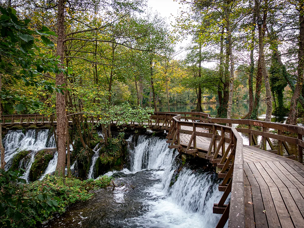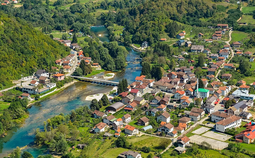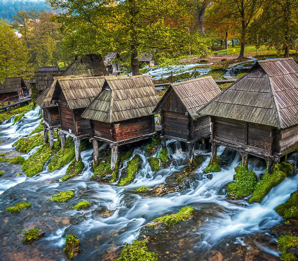 Esmorzar a l’hotel. Sortirem de Sarajevo cap al nord-oest del país per fer una ruta que combina arquitectura otomana, cascades, llacs i hospitalitat local. La primera parada la farem a Travnik, l’antiga capital dels visirs otomans, on visitarem la seva imponent fortalesa medieval, veurem la casa natal del premi Nobel de literatura Ivo Andric, visitarem la mesquita de Sulejmanja, coneguda popularment com la mesquita pintada, i passejarem pel costat del riu Plava Voda, abans de dinar a un dels restaurants més coneguts del país per l’elaboració de les famoses salsitxes “ćevapčići”. Continuarem la ruta cap a la històrica ciutat de Jajce, famosa per la seva espectacular cascada de 22 metres d’alçada situada just al centre urbà. Explorarem les catacumbes i tot seguit ens dirigirem cap als idíl·lics molins d’aigua del llac Pliva, unes petites construccions de fusta sobre pilons que semblen tretes d’un conte de fades. Aquest entorn natural és perfecte per relaxar-se i gaudir del reflex de les muntanyes a les aigües cristal·lines del llac. Reprendrem la marxa creuant la República de Srpska, una de les divisions dins del país, i tot recorrent paisatges verds i frondosos arribarem a les proximitats de Bihac, a la vora del riu Una, on ens allotjarem i soparem a l’hotel.