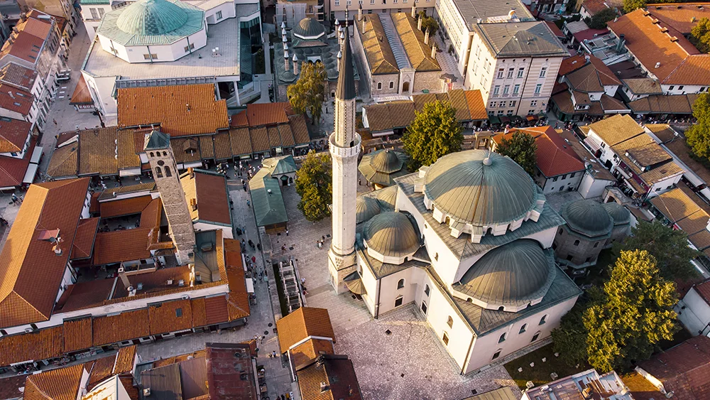Presentació a l’aeroport de Barcelona i sortida del vol via Frankfurt, on connectarem amb el vol a Sarajevo, una ciutat única on l’arquitectura de l’imperi otomà conviu amb l’arquitectura europea, oferint una barreja cultural i històrica fascinant. En aterrar i un cop recollit l’equipatge, ens traslladarem al centre de la ciutat, on dinarem. Aquesta tarda coneixerem a peu els principals racons del centre de Sarajevo, una abraçada eterna entre Orient i Occident, on el ressò de les mesquites i el repic de les esglésies s’entrellacen en una història de resiliència que es nega a oblidar i una hospitalitat que et fa sentir com a casa. Començarem el recorregut a l’emblemàtic edifici de l’Ajuntament, una joia arquitectònica d’estil morisc; ens endinsarem al basar de Baščaršija on veurem la Mesquita Gazi Husrev-beg, la més important del país. Seguirem passejant per l’antic Barri Jueu amb la seva sinagoga històrica, testimoni de la convivència religiosa de la “Jerusalem d’Europa”, i tot seguit farem camí cap a la Catedral del Sagrat Cor, el principal temple catòlic, i admirarem la grandesa exterior de la Catedral de la Nativitat de la Mare de Déu, el referent ortodox de la ciutat. Pasarem també pel barri de Mojmilo, on ens aturarem a la Plaça Barcelona, testimoni de l’agraïment de la ciutat a l’ajut dels catalans durant la guerra. Finalment arribarem al Pont Llatí per reviure la història en el punt on es va originar la I Guerra Mundial. En acabar la visita anirem a sopar a un bon restaurant local i descansarem a l’hotel.