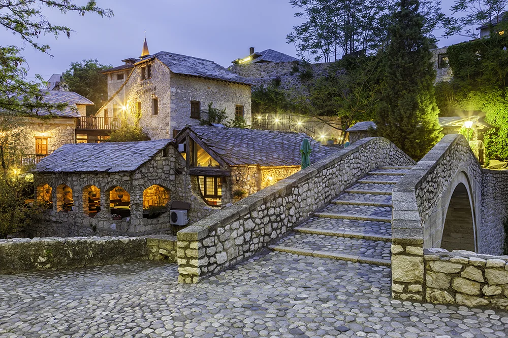 Esmorzar a l’hotel. Mostar és una joia dels Balcans on història i arquitectura es troben a cada racó. Durant el nostre recorregut a peu veurem la seva gran icona, l’Stari Most, un pont del segle XVI reconstruït fidelment amb pedra després de la seva destrucció el 1993 durant la guerra. Aquesta obra mestra de l’enginyeria otomana, dissenyada per l’arquitecte Mimar Hayruddin, s’eleva 24 metres sobre les aigües turqueses del riu Neretva. Al seu voltant recorrerem els racons més bells del barri de Kujundžiluk, que encara conserva l’estructura del basar antic, amb carrerons empedrats i tallers d’artesania tradicional. L’arquitectura destaca pel contrast entre les cases de pedra amb teulades de llosa i els esvelts minarets de mesquites com la de Koski Mehmed Pasha. Visitar la ciutat permet entendre la resiliència d’un poble que ha sabut restaurar el seu patrimoni i la seva convivència. És, sens dubte, un lloc on cada carrer explica una crònica de superació i bellesa. En acabar la visita anirem a dinar a una coneguda bodega local, on tastarem els seus preuats vins i la seva deliciosa gastronomia. A la tarda ens acostarem fins a Blagaj, un racó de pau espiritual on la història mística i la natura més salvatge de Bòsnia i Hercegovina s’abracen de forma única.