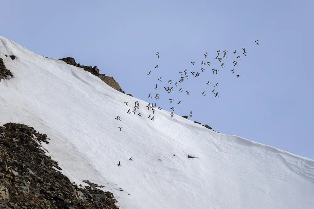 Pensió completa a bord del vaixell. Avui navegarem cap al nord d’Spitsbergen resseguint la costa oest d’aquest territori de bellesa salvatge. Durant el dia navegarem la zona de Magdalenefjorden coneguda pels seus espectaculars paisatges de tipus alpí. Les aigües fredes i clares reflecteixen penya-segats abruptes que acullen colònies d’ocells marins. Durant el recorregut també veurem les restes d’una important estació balenera del segle XVIII. A més a més de gaudir d’aquests espectaculars paisatges també desembarcarem amb les nostres zodíacs per trepitjar aquest territori salvatge i poder descobrir algunes de les abundants aus que freqüenten aquesta zona, entre les que destaquen els frarets. Si la sort ens acompanya podrem gaudir de l’albirament de fauna local com l’os polar i el ren salvatge.