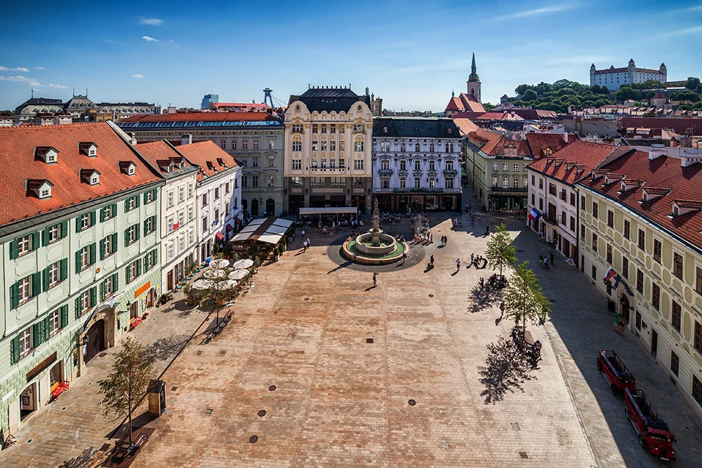 Esmorzar a l’hotel. Aquest matí ens dirigirem a Banská Štiavnica, una ciutat minera amb encant decadent i carrers empedrats que s’enfilen entre cases acolorides. Banská Štiavnica es troba amagada entre muntanyes verdes i és una de les poblacions d’aquesta zona plena d’història minera. Durant el recorregut els carrers costeruts, amb cases acolorides i teulades irregulars, ens conduiran fins a la plaça de la Santíssima Trinitat, cor vibrant de la ciutat. Visitarem la botiga de minerals i a continuació ens dirigirem a Trnava, coneguda com la “Roma d’Eslovàquia” per les seves nombroses esglésies i convents. En arribar dinarem i a la tarda farem una breu passejada pel seu casc històric, abans de continuar la ruta fins a la capital, Bratislava. Ens allotjarem a l’hotel i al vespre sortirem a sopar a un bon restaurant local.