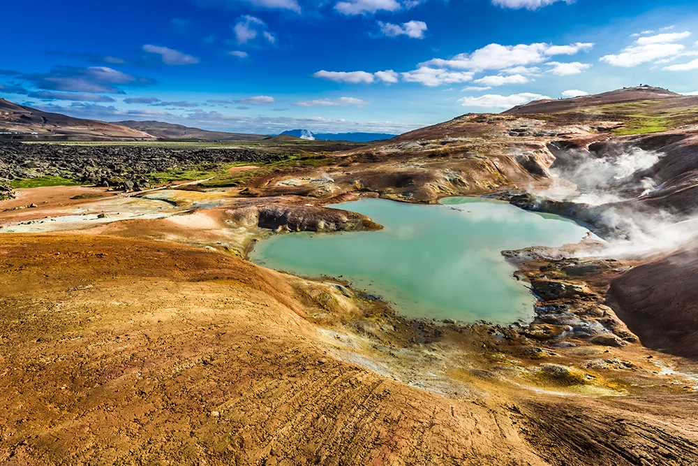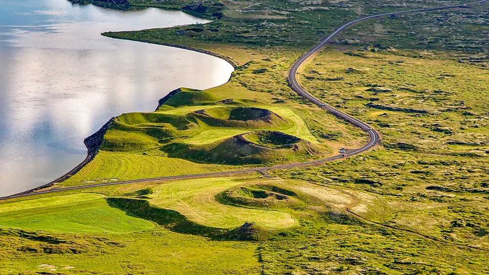 Sortirem de bon matí cap a la zona volcànica del llac Mývatn. De camí pararem a la cascada de Godafoss, la cascada dels déus. Acabada la visita, continuarem l’etapa fins al llac Mývatn. Durant la nostra estada a Mývatn anirem a veure el Krafla i els seus fantàstics camps de lava, pujarem al cràter lacustre del volcà Viti, veurem les calderes de fang bullent de Hverarönd i ens aproparem a les espectaculars formacions volcàniques que envolten el perímetre del llac. Acabada la visita, ens instal·larem a un hotel de la zona on soparem.