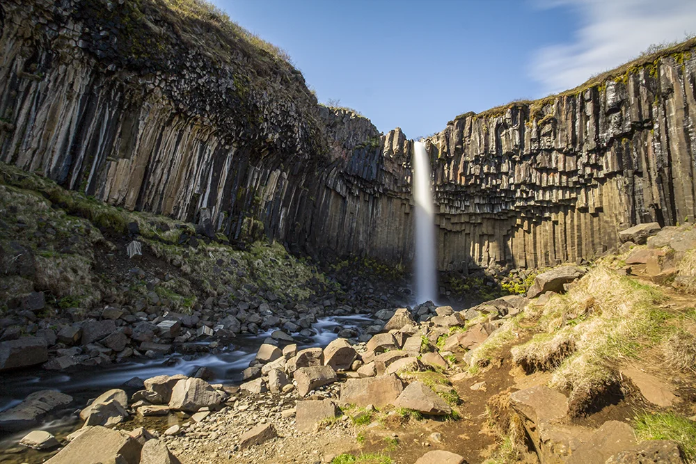 Durant el dia d’avui explorarem el casquet polar de Vatnajökull. Coneixerem aquesta zona des de la granja de Smyrlabjörg amb vehicles 4×4 i en acabar l’excursió refarem el camí fins a la granja, on dinarem. Continuarem amb autocar fins a Jökulsárlon i embarcarem a un vaixell per fer un creuer entre icebergs. Acabarem la jornada al Parc Nacional de Skaftafell per fer una excursió a Svartifoss, la cascada negra i a la glacera Skaftafelljokul. Ens allotjarem a un hotel de la zona i soparem.