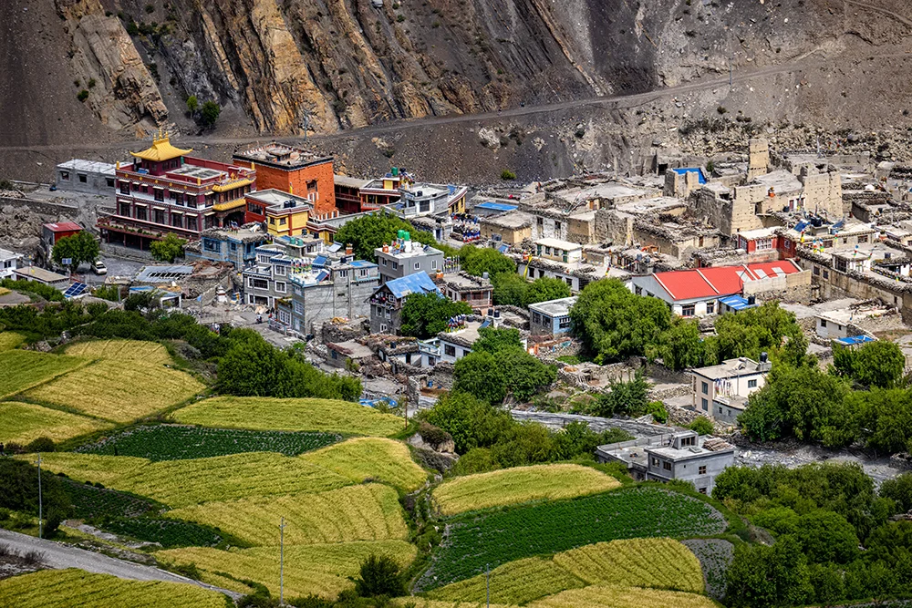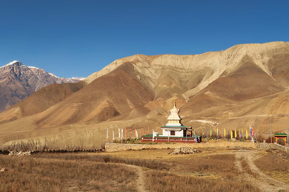 Després d’esmorzar continuarem amb els vehicles 4×4 gaudint d’una ruta panoràmica pels bells paisatges de Mustang. En primer lloc visitarem el poble de Thini, un encantador assentament tradicional situat a l’Himàlaia, que ofereix una visió de la cultura local Thakali. Des d’allà, el recorregut ens portarà al llac Dumbha, un lloc tranquil i pintoresc envoltat d’impressionants vistes a la muntanya. Després de gaudir de la tranquil·litat del llac, dinarem i continuarem el descens cap a Tatopani, coneguda per les seves aigües termals naturals, on podrem relaxar-nos enmig de la natura i gaudir d’un bany termal després d’un gratificant dia de viatge. Sopar i allotjament a l’hotel.