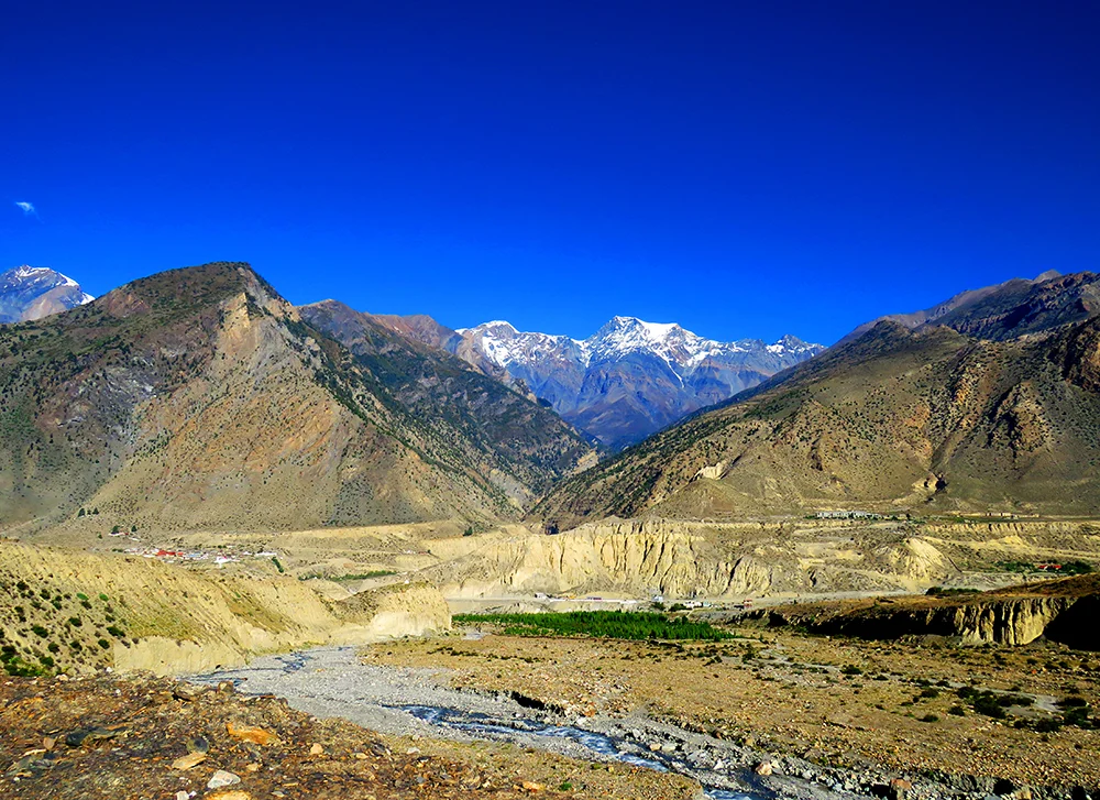 Esmorzar a l’hotel. Aquest matí seguirem amb els vehicles 4×4 a través de la vall baixa de Mustang. Durant el recorregut visitarem el poble de Tukuche i els horts de pomeres al voltant del poble de Marpha. Amb la seva abundant producció de poma, Marpha és la capital de la poma del Nepal. Tot seguit dinarem i a la tarda coneixerem el poble de Kagbeni, on destaca la seva Gompa i les ruïnes d’una antiga fortalesa. Acabarem el dia a Muktinath, lloc sagrat per budistes i hindús, on soparem i ens allotjarem envoltats d’un grandiós paisatge.