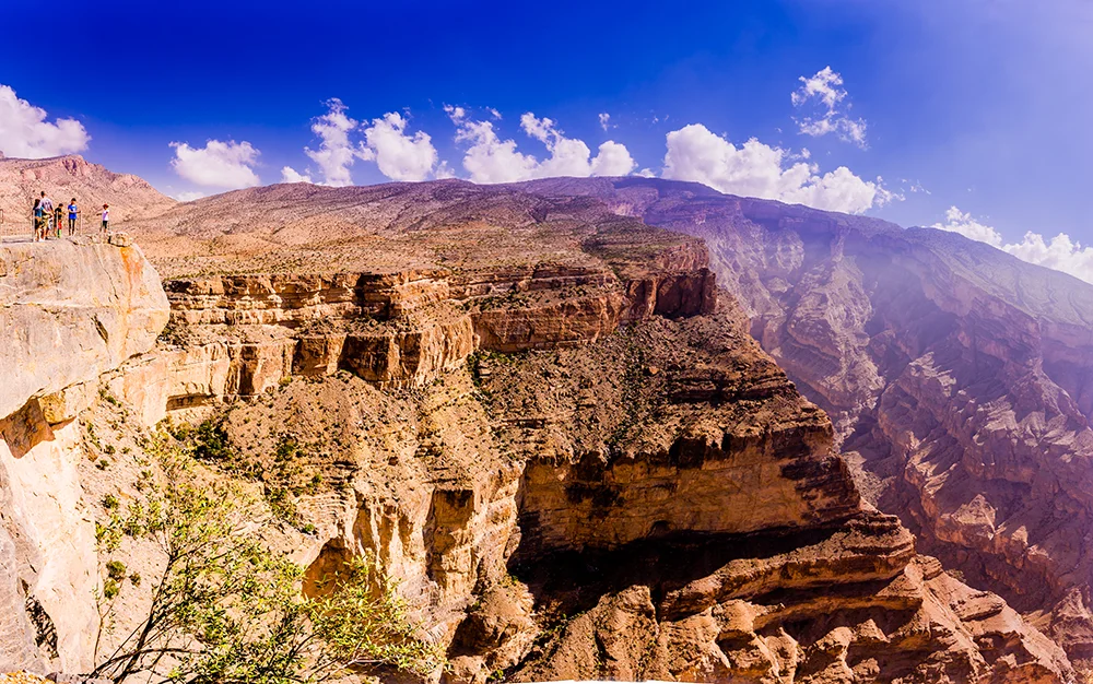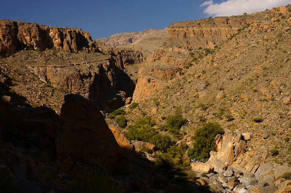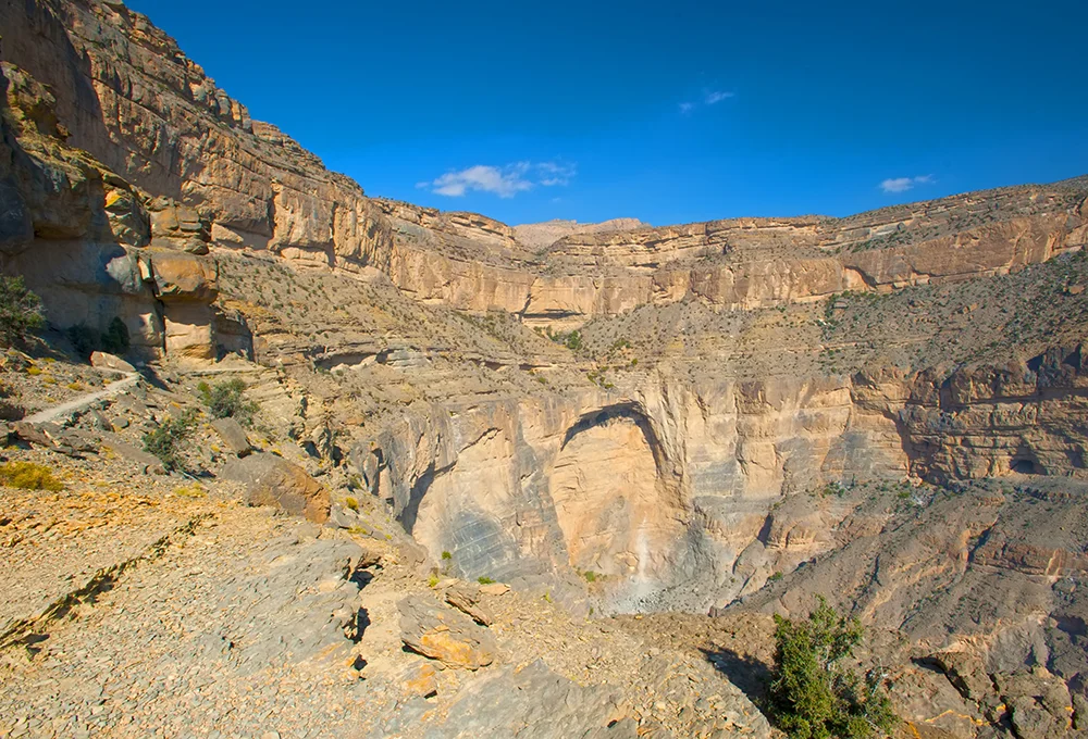 Avui explorarem el massís de Jebel Akhdar, que forma part de les muntanyes d’Al Hajar, una cadena de més de 300 quilòmetres de longitud i 100 quilòmetres d’amplada que forma la columna vertebral del nord del país. Començarem el dia pujant amb 4×4 a Jebel Shams, que amb 3.010 metres d’altitud és el cim més alt del massís i d’Oman. Durant el trajecte per la llarga i sinuosa carretera passarem per diversos poblets de muntanya. Finalment arribarem al cim, des d’on es gaudeix de vistes espectaculars. Dinarem i a la tarda farem una excursió per l’anomenat Balcony Trail, el camí del balcó, un corriol de vistes impressionants que recorre el vessant de Wadi Nakhr, l’anomenat Grand Canyon d’Oman, de més de mil metres de profunditat. Acabada l’excursió retornarem al nostre hotel.