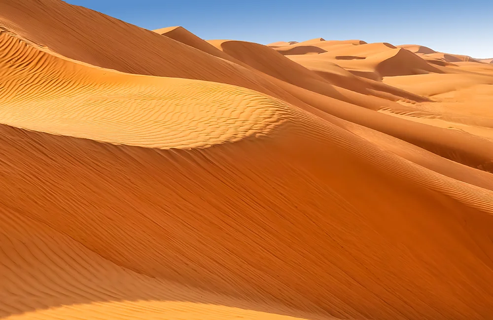 Esmorzarem i ens dirigirem amb els nostres vehicles 4×4 a l’oasi de Wadi Bani Khalid, considerat un dels més bonics d’Oman. Tal i com podrem veure, Wadi Bani Khalid està envoltat de penya-segats i gaudeix d’un entorn exuberant, amb palmeres i piscines naturals que contrasten vivament amb l’ambient circumdant. Disposarem de temps per banyar-nos i dinarem. A la tarda continuarem l’etapa fins les dunes de Wahiba, un paisatge impressionant de més de 200 quilòmetres de longitud i 100 quilòmetres d’amplada amb dunes de fins a 150 metres d’alçada. Amb els 4×4 ens endinsarem en aquest entorn de sorra pujant i baixant dunes fins arribar al campament on ens allotjarem, situat al mateix desert. Sopar al campament.