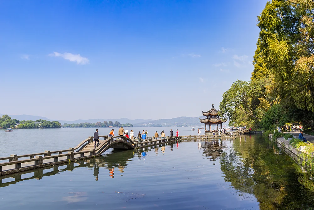 Esmorzar a l’hotel. Avui farem un passeig en barca pel llac Oest (UNESCO), situat al cor de la ciutat. Durant el recorregut contemplarem les diferents illes, pavellons, ponts de pedra i temples que creen una atmosfera i un paisatge sorprenents. Tot seguit visitarem un taller de te; Hangzhou no és només un lloc on es produeix te sinó que aquí la cultura del te és una part integral de la vida quotidiana lligada a la seva història i tradicions locals. Dinarem i dedicarem la tarda a la visita del temple budista del Refugi de l’Ànima, conegut per la seva majestuosa arquitectura, format per diversos pavellons i sales imponents, amb estàtues de Buda, frescos i decoracions. Abans de retornar a l’hotel també descobrirem la Pagoda de les Sis Harmonies, des d’on gaudirem d’una vista espectacular de la ciutat i el seu entorn. Avui assistirem a un espectacle nocturn de llums i so al llac Oest i farem una passejada pel barri antic abans de sopar a un restaurant local.